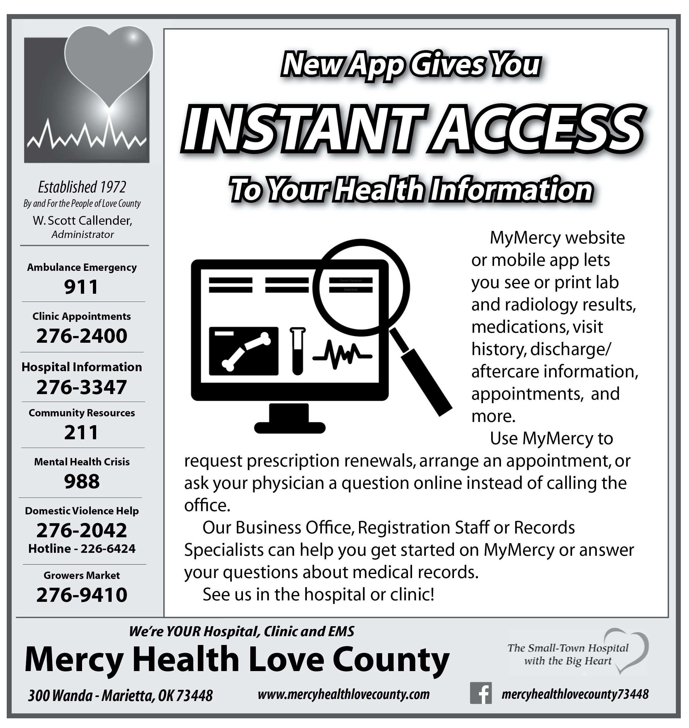 Mercy Health/Love County Hospital has a new device, “AccuVein,” for casting light on blood veins, even those deep below the skin. That helps the nurse or “phleblotomist” quickly locate the target vein and evaluate its condition before making a first attempt at penetrating the vein wall with a needle for collection.